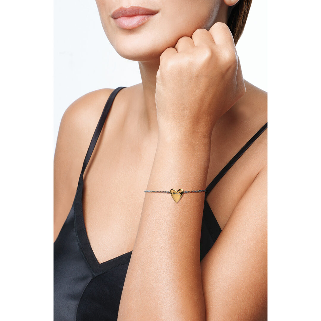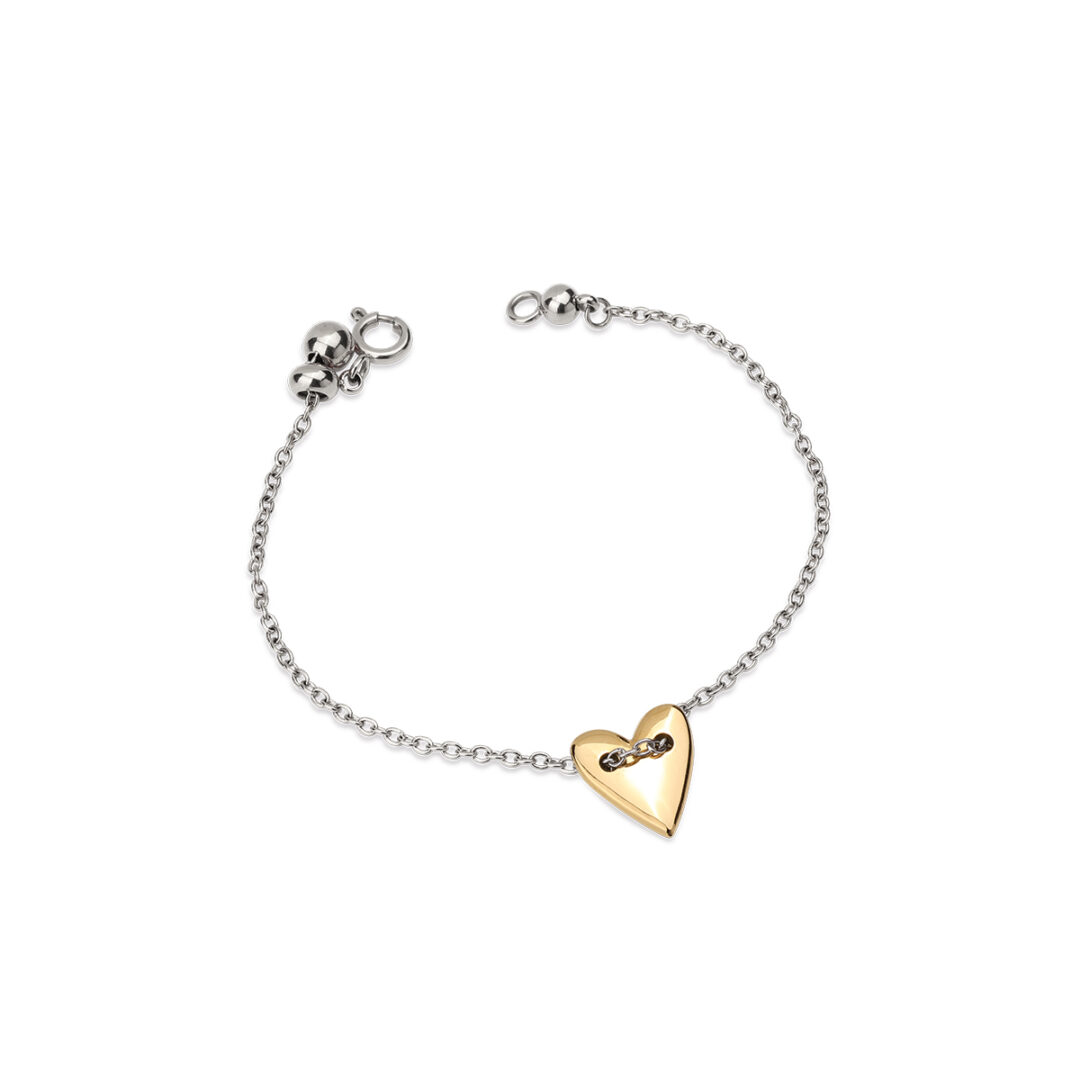 Polished steel bracelet with yellow gold PVD treatment. Custom OPS!. Heart-shaped pendant with contrasting chain. Adjustable length from 17 to 20 cm.