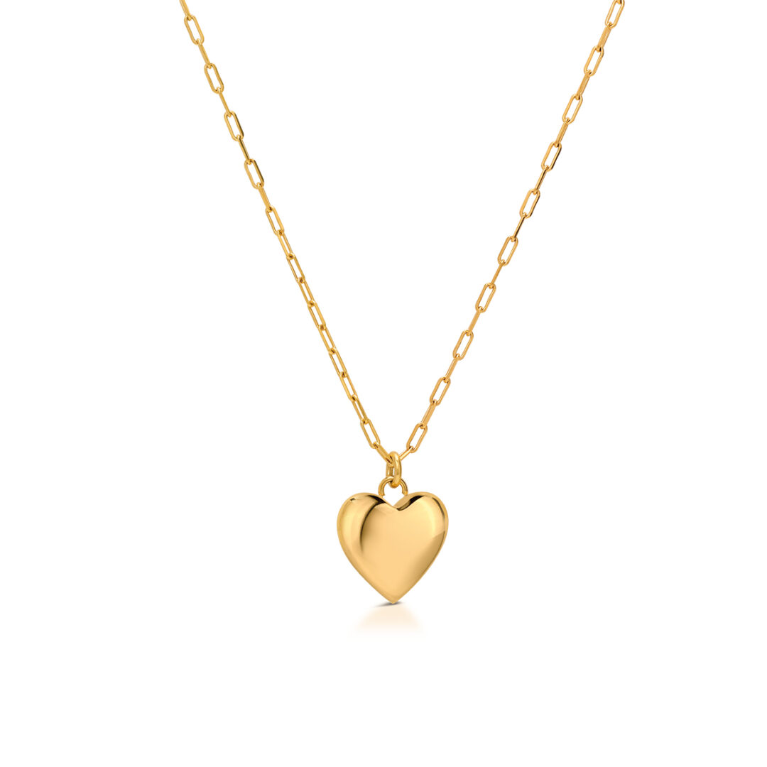 Polished steel necklace with yellow gold PVD treatment. Custom OPS!. Rounded heart-shaped pendant. Adjustable length from 40 to 45 cm.