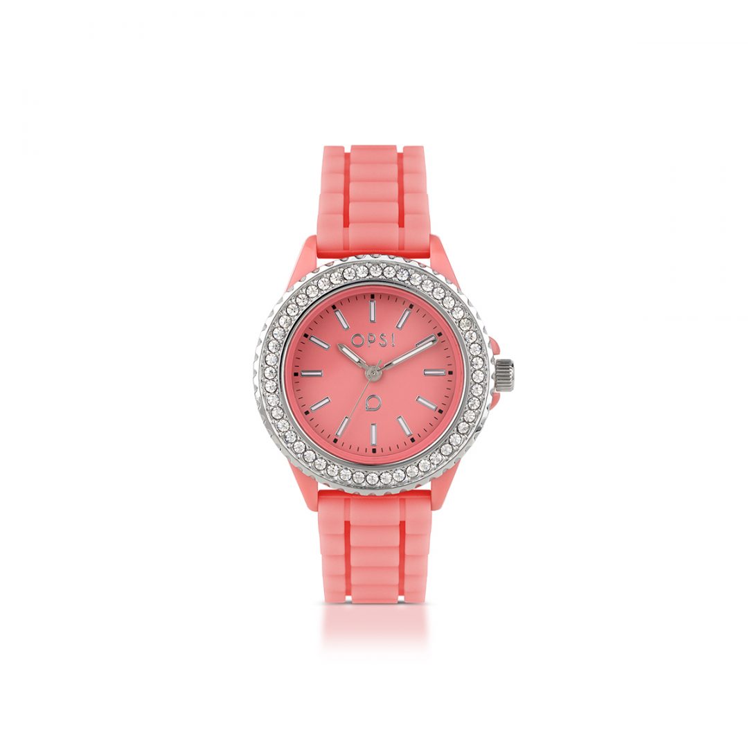 34 mm transparent plastic case and domed glass. Steel caseback. Y120F1 movement. Water Resistant 3 atm. Colorful silicone strap. Strap width: 16/18 mm. Inner circumference of the strap: 140mm to 180mm. Pin closure.