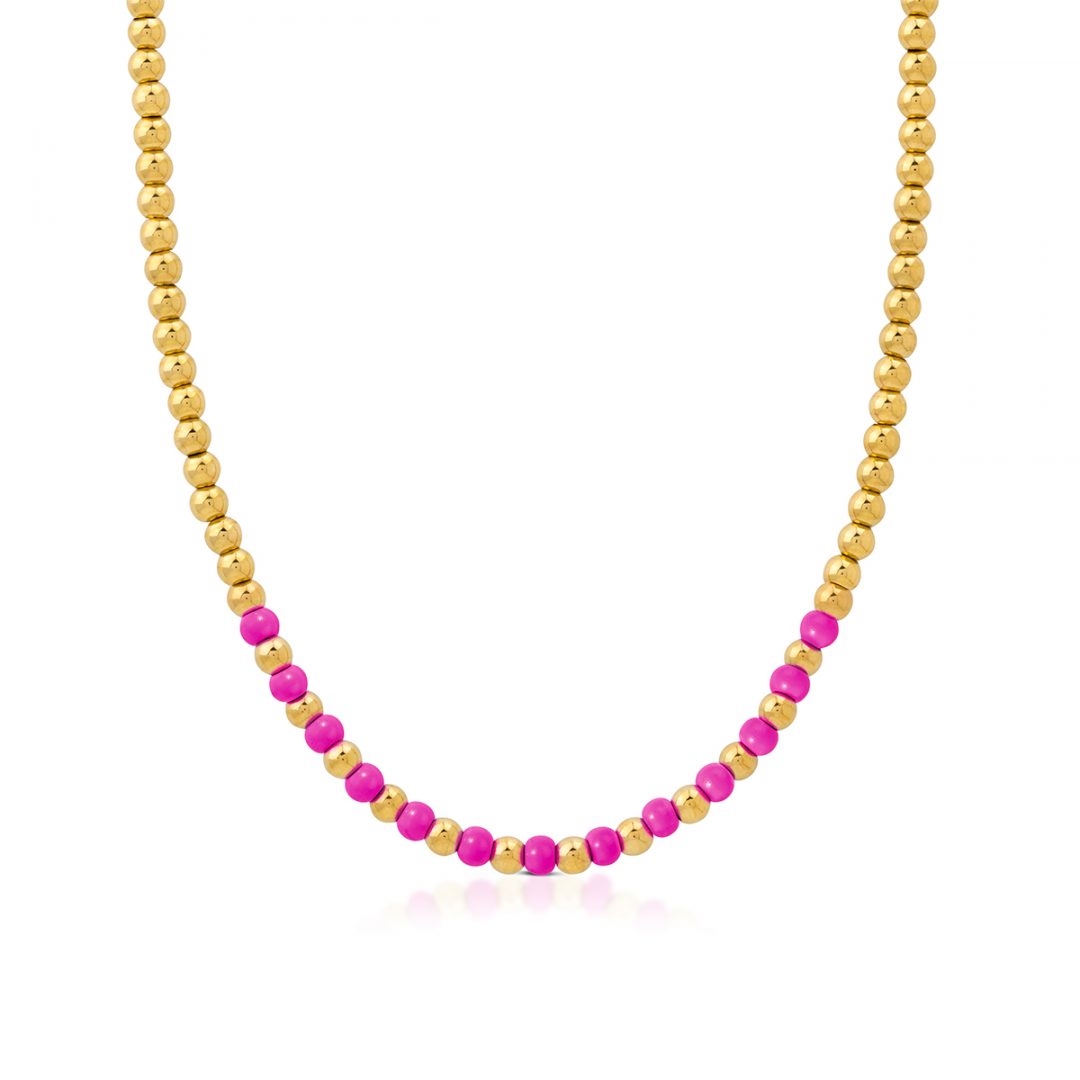 Necklace with colored enamel boules and polished steel with yellow gold pdv treatment. Color variants: light blue, green, white, black, fuchsia, pink. Length: 42+3 cm.