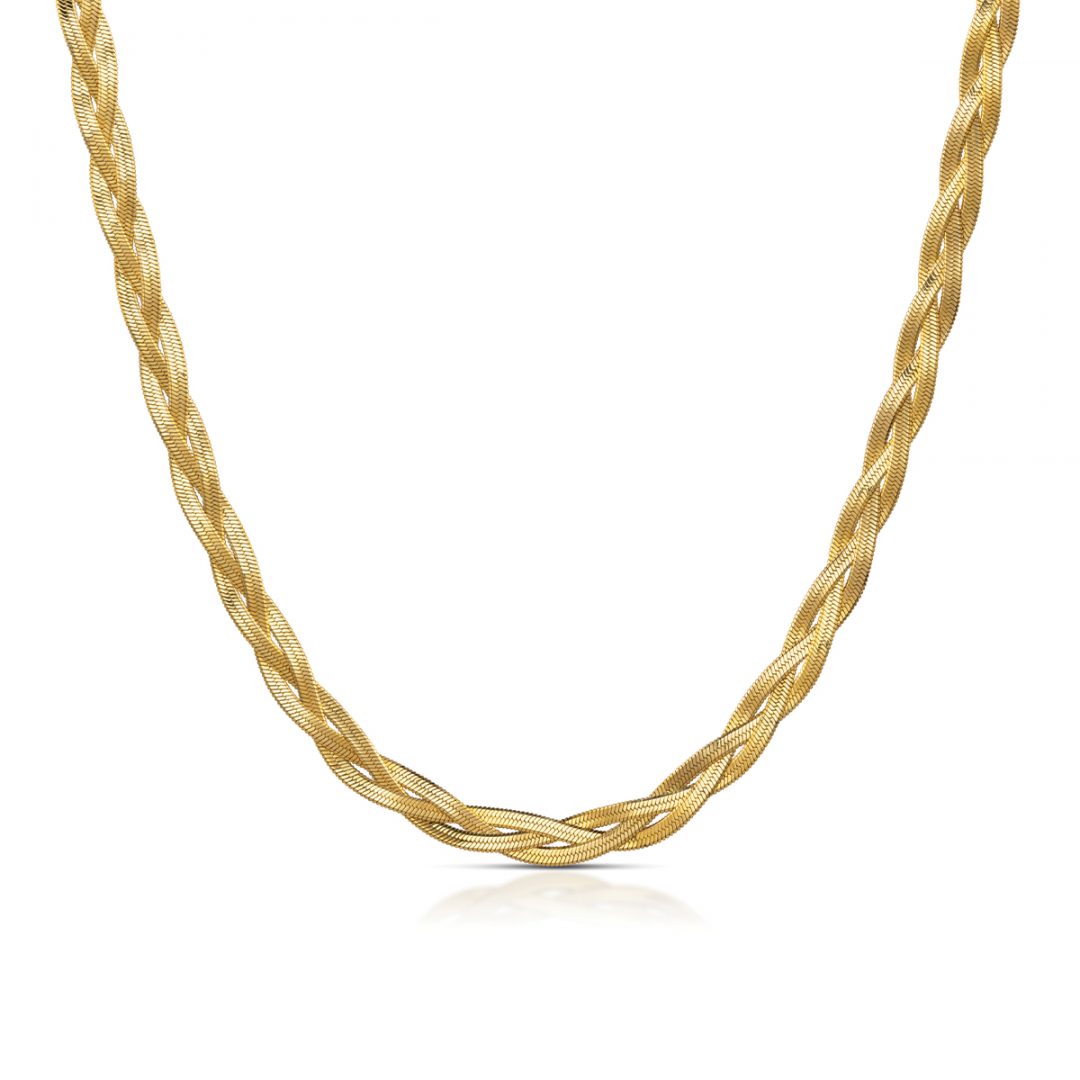 Polished steel necklace with yellow gold PVD treatment. Length 38cm adjustable to 43cm.