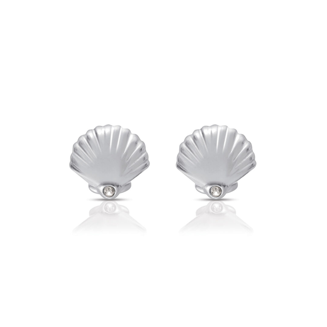 17.6Shiny steel and crystal shell earrings.