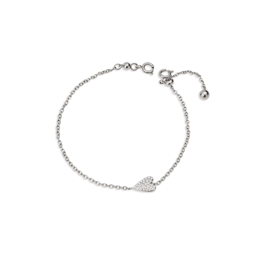 Polished steel bracelet with yellow gold PVD treatment. Custom OPS!. Heart-shaped pendant with cubic zirconia. Adjustable length from 17 to 20 cm.