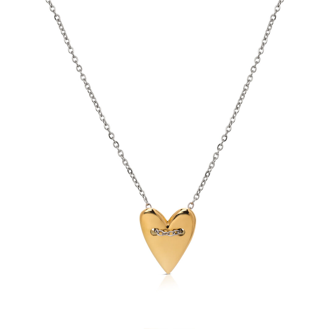 Polished steel necklace with yellow gold PVD treatment. Custom OPS!. Heart-shaped pendant with contrasting chain. Adjustable length from 40 to 45 cm.
