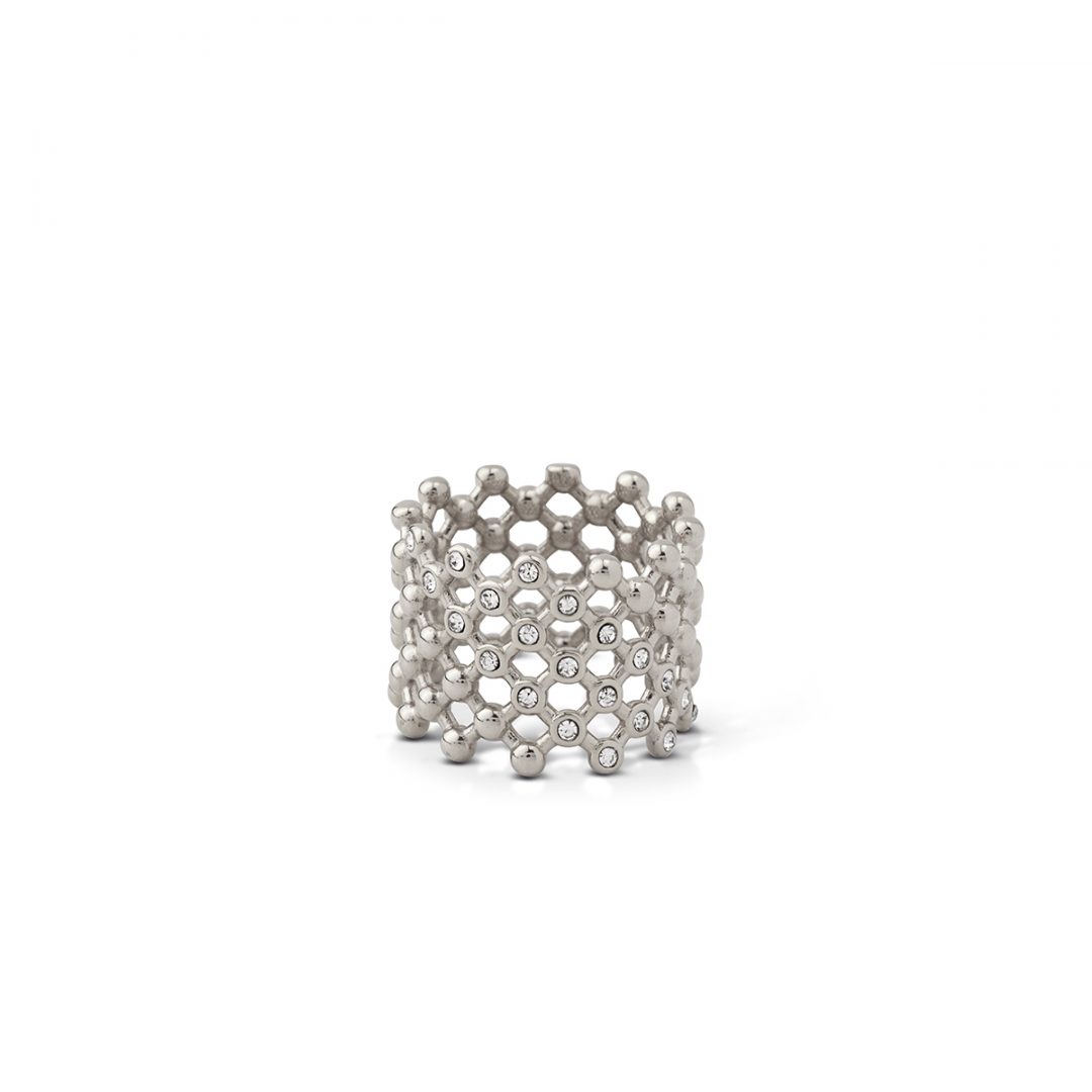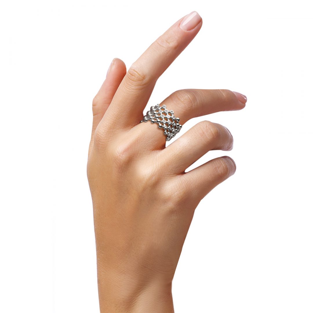 Ring with mini spheres in polished steel with white stones. Size 12, 14, 16.