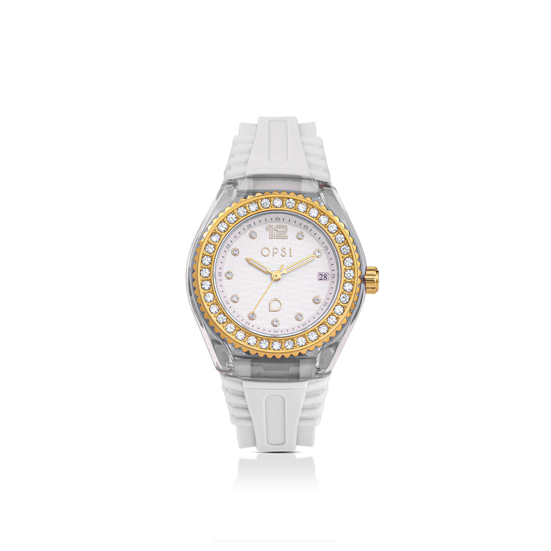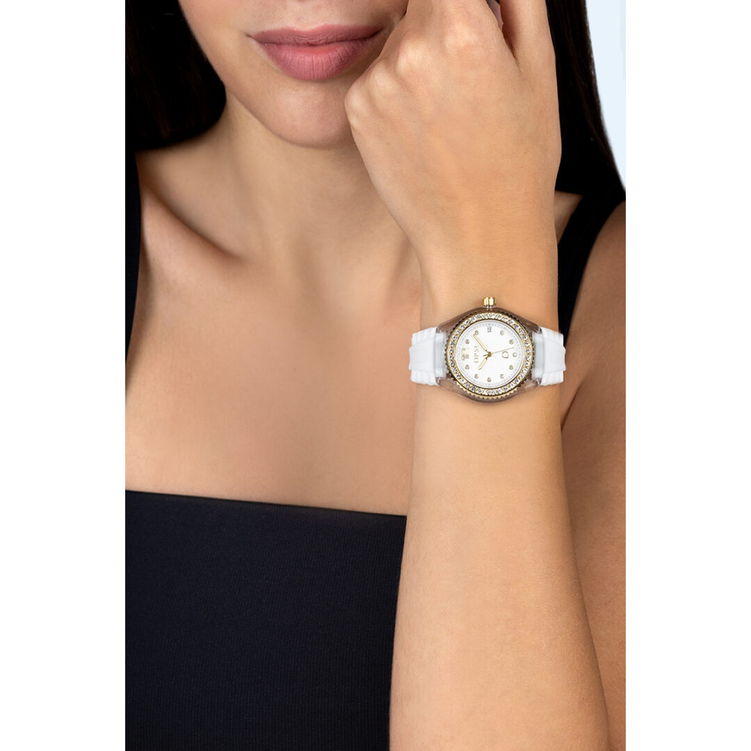 36 mm colored plastic case. Patterned dial. Mineral glass. Steel case back. VX3J movement. Water resistant 3 atm. PU strap. Bracelet width: 20/16 mm. Bracelet inner circumference: from 180 mm to 140 mm. Pin clasp.