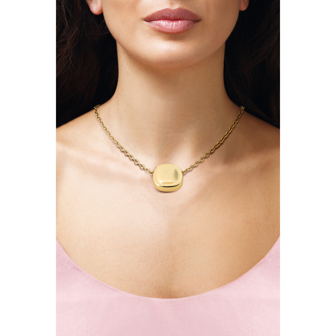 Necklace in polished steel with yellow gold pdv treatment. Material: Golden Steel. Necklace length: 40 adjustable to 45 cm.