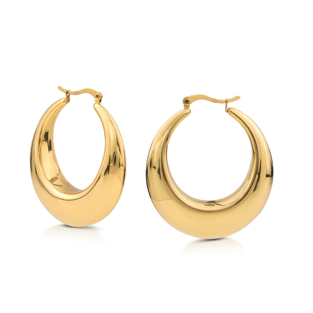 39POLISHED STEEL EARRINGS WITH YELLOW GOLD PDV TREATMENT.
