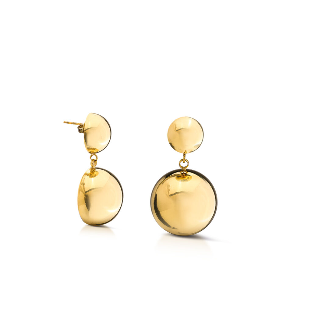 35STEEL BALL DANGLE EARRINGS WITH YELLOW GOLD PVD TREATMENT.