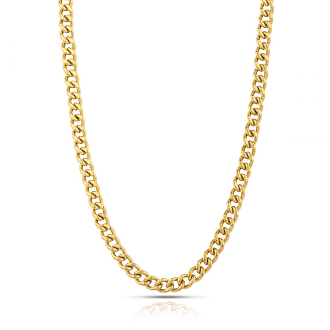 Groumette link necklace in polished steel and yellow gold PVD treatment. Personalized with OPS heart. Chain width 7 mm. Length 38cm adjustable to 43cm.