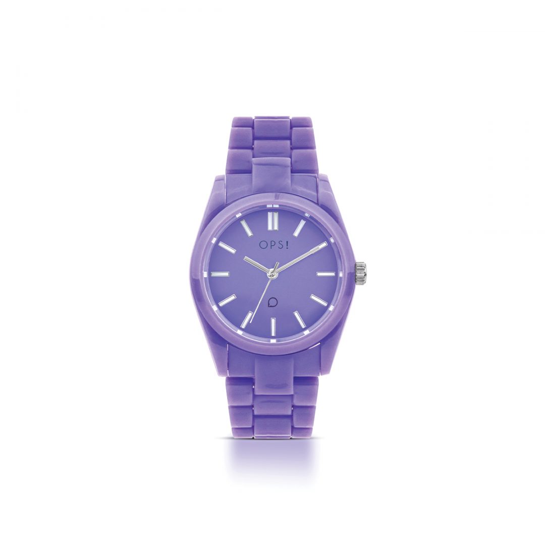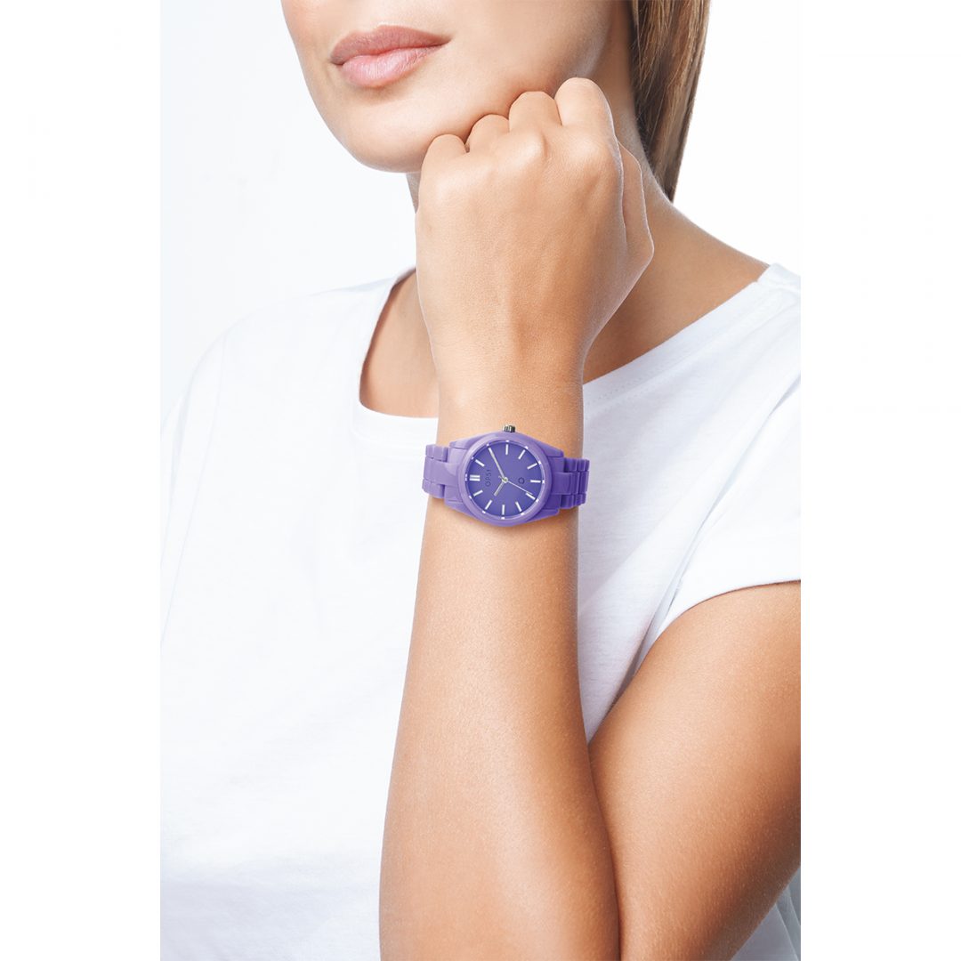 36 mm colored plastic case. Steel caseback. Y121 movement. Water Resistant 5 atm. Colored plastic bracelet. Band width: 18/16mm. Inner circumference of the bracelet: from 180 mm to 140 mm. Diver closure.