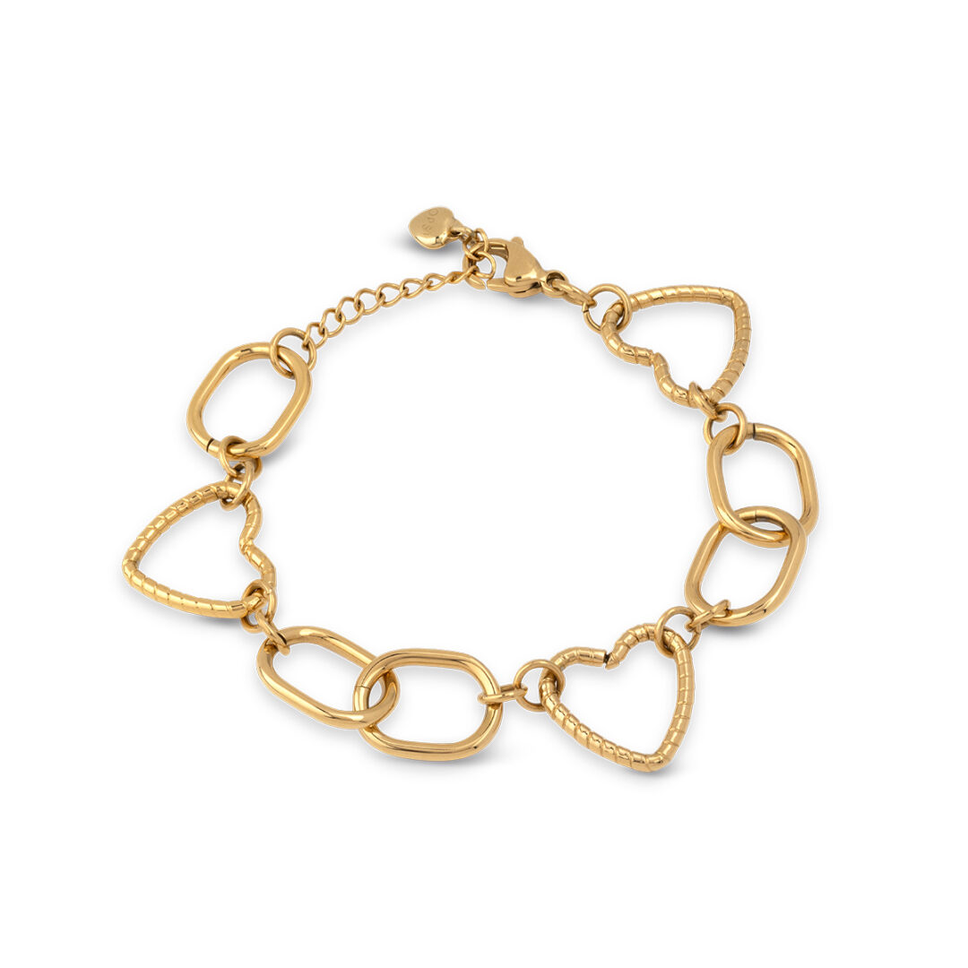 Polished steel bracelet with yellow gold pdv treatment. Material: Golden Steel. Total length: 19cm.