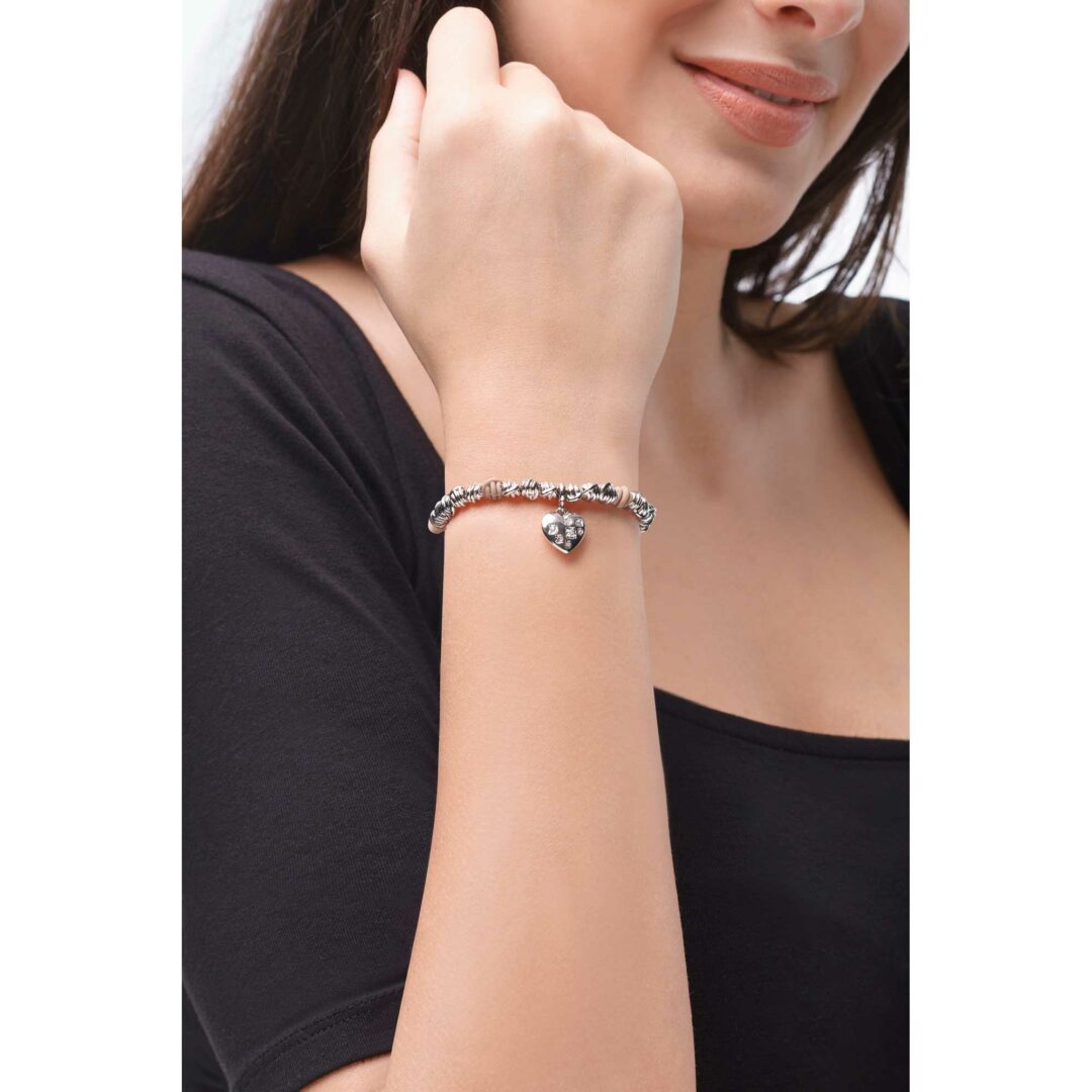 35.2Steel bracelet with silicone knots with heart pendant and crystals in silver or rose gold.