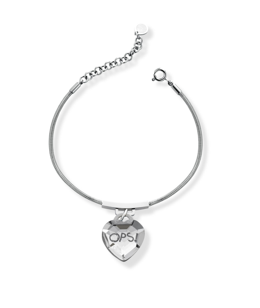 Personalized polished steel bracelet with OPS plate, rose gold / yellow gold PVD treatment. Heart-shaped pendant in faceted glass. Length 16 cm adjustable to 20 cm.