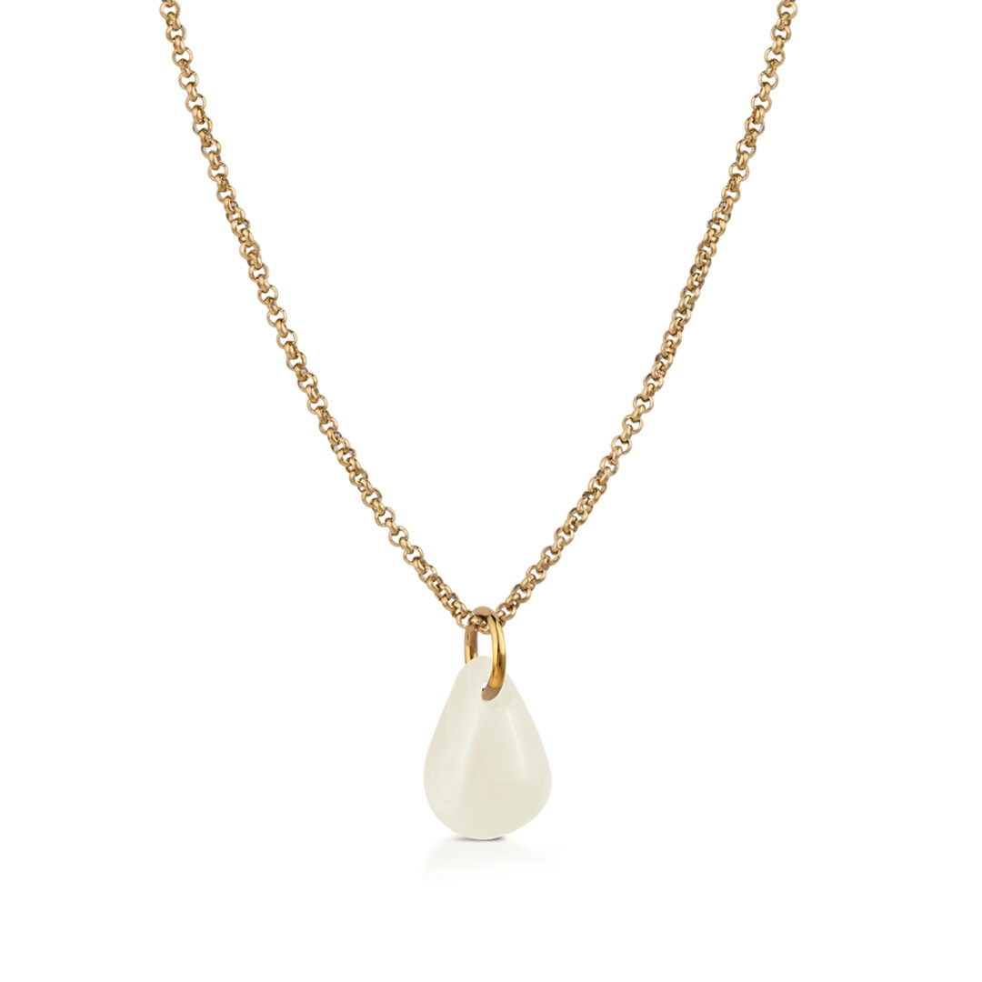 Collana in acciaio lucido con trattamento pdv oro giallo e pendente in resina milky bianca, rosa oppure azzurra. Materiale: Acciaio Dorato. Lunghezza Collana: 40 regolabile a 45 cm.