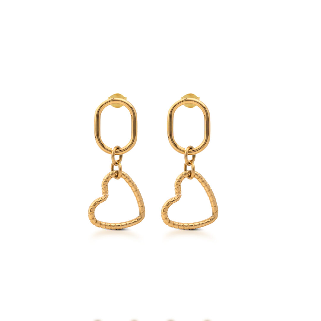 Orecchini in acciaio lucido con trattamento pdv oro giallo. Materiale: Acciaio. Lunghezza: 3,5 cm