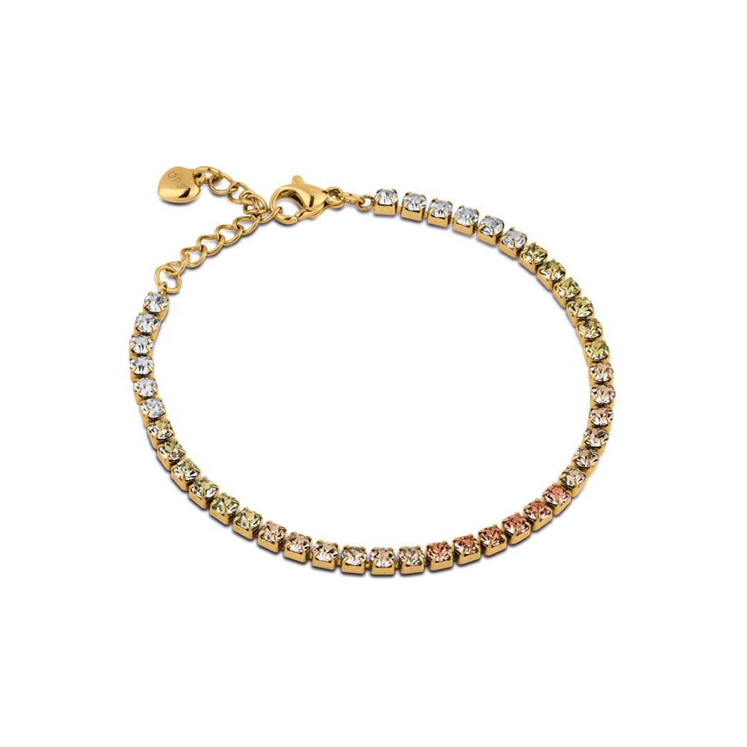 Bracciale tennis in acciaio lucido con trattamento PVD oro giallo. Personalizzato OPS.