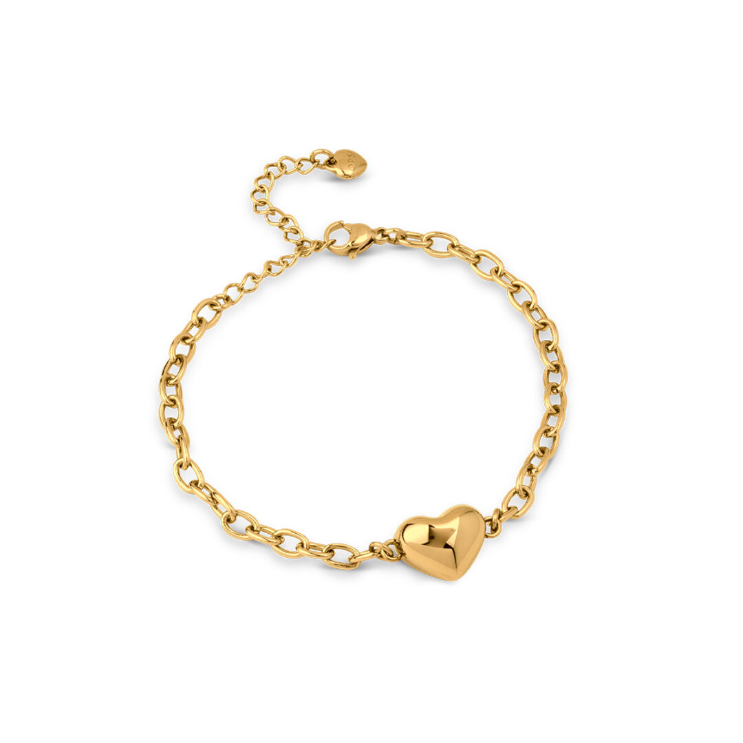 Bracciale in acciaio lucido con trattamento pdv oro giallo. Materiale: Acciaio Dorato. Lunghezza totale: 17+3 cm