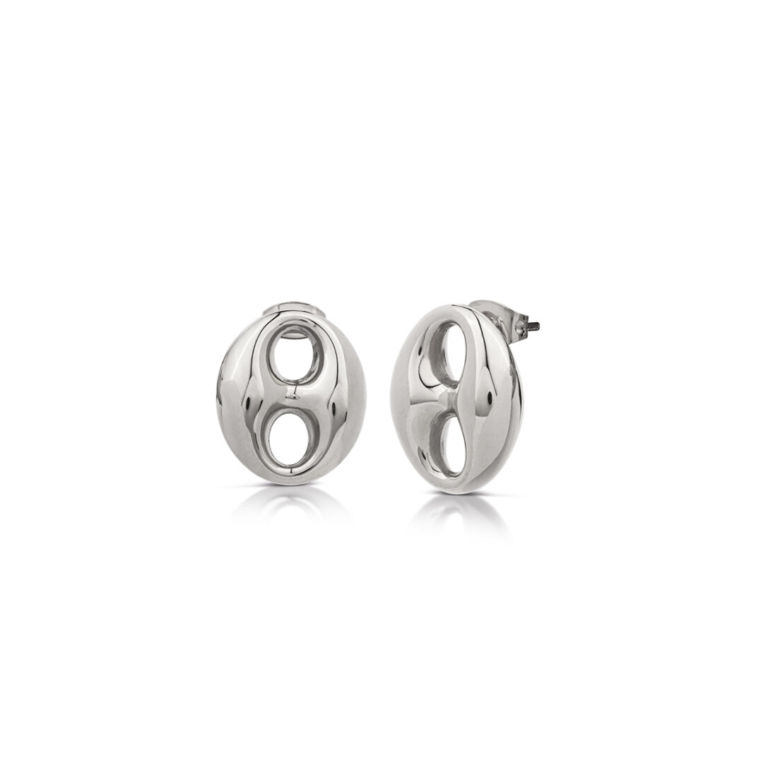Orecchini a lobo maglia navy in acciaio lucido con trattamento PVD oro giallo. Personalizzata OPS!. Dimensione 1,5 cm.
