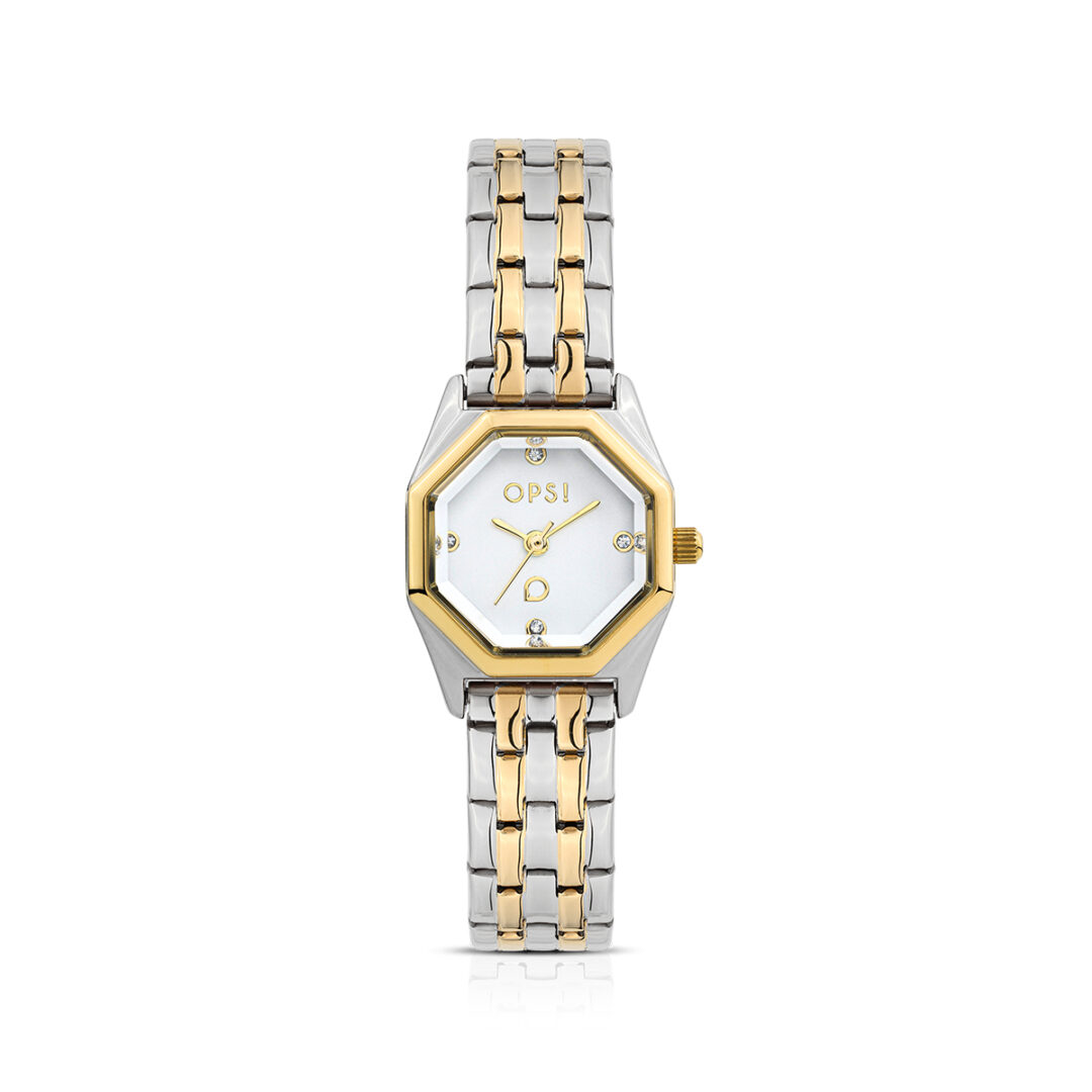 Orologio con cassa ottagonale in metallo 21 mm silver, trattamento PVD oro giallo e bicolor. Quadrante sunray silver e nero. Vetro minerale sfaccettato. Fondello in acciaio. Movimento PC21. Water resistant 3 atm. Bracciale 5-link in metallo, trattamento PVD oro giallo e bicolor. Larghezza bracciale 10 mm. Circonferenza interna bracciale da 175 mm a 140 mm. Chiusura diver